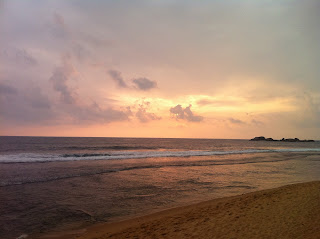 | Hikkaduwan hotellin rannasta. Käytiin kaukana näkyvillä kivillä snorklaamassa. |